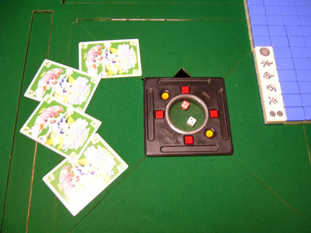 | 雀卓、ちゆカードで座る場所決めです。 |